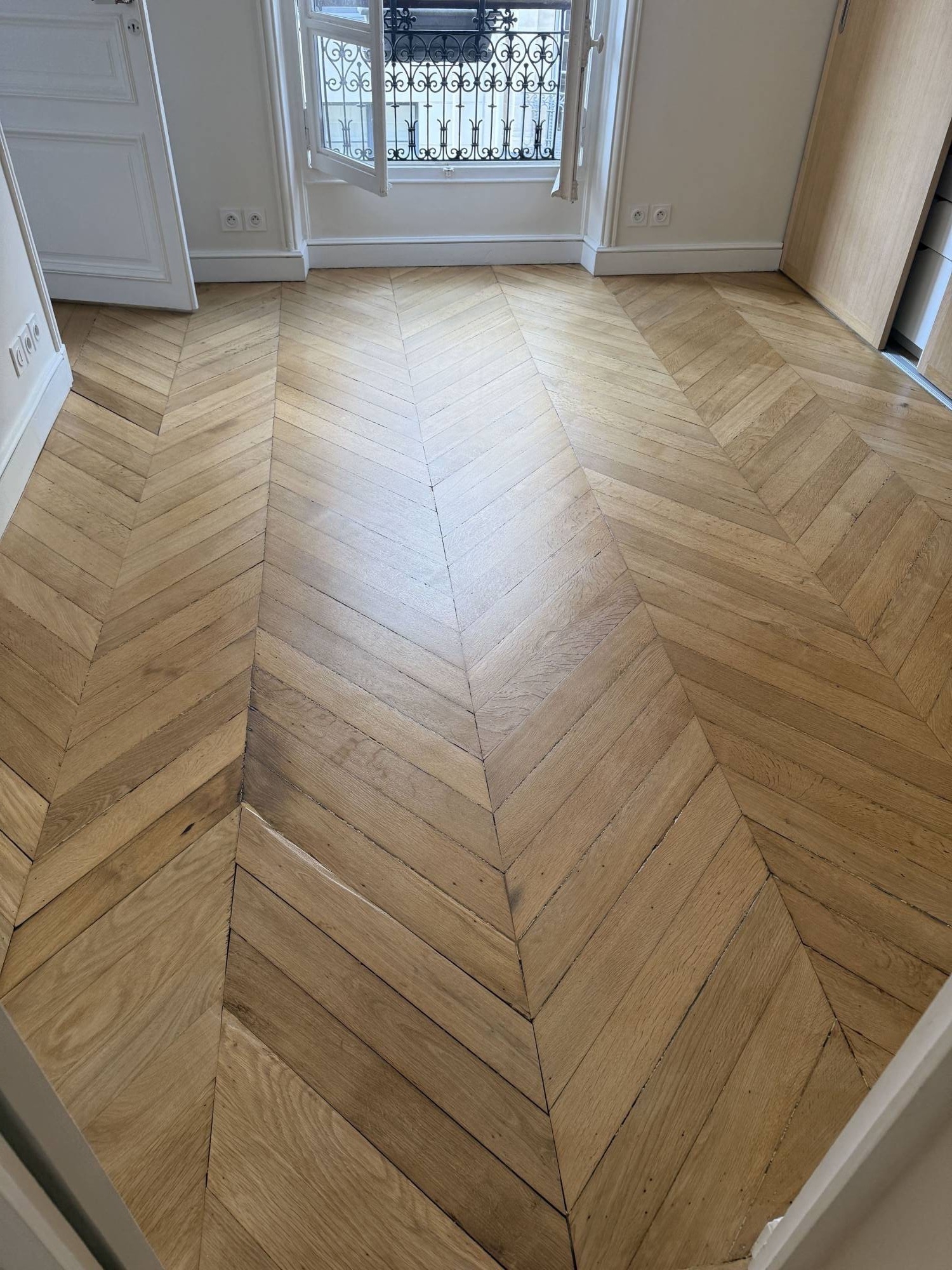 Les parquets massifs et les parquets contrecollés sont des revêtements de sol que l’on peut restaurer, par un ponçage en 3 grains et une vitrification 3 couches avec égrenage. Notre savoir-faire et notre qualité de travail feront toute la différence : technique, sens du ponçage et types de vitrificateurs ou huiles pour la meilleure des finitions ainsi qu'un travail sans poussière.