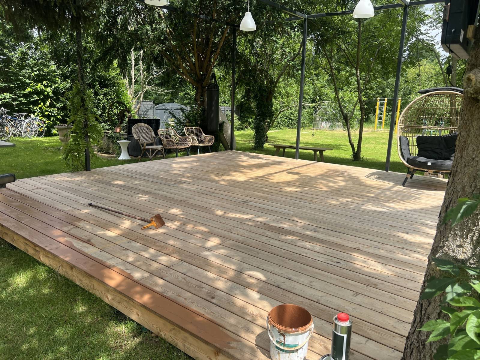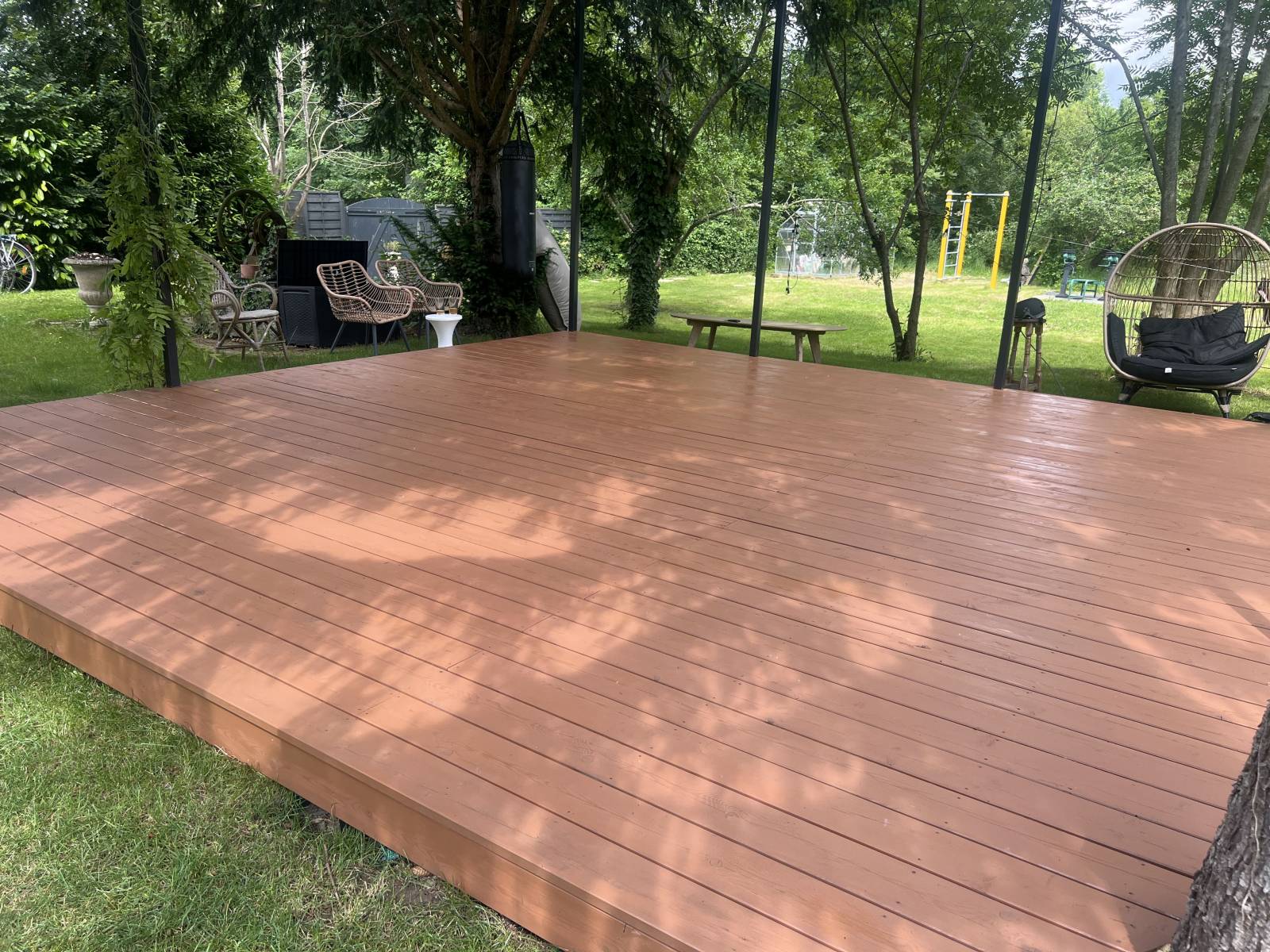 La société *Les Parquets et Terrasses de Paris* vous propose une rénovation complète de votre terrasse en bois exotique à Poissy, dans les Yvelines, en utilisant le saturateur Rubio Monocoat. Ce traitement haut de gamme est spécialement conçu pour protéger et sublimer les bois exotiques, tout en préservant leur beauté naturelle. Le saturateur Rubio Monocoat pénètre profondément dans les fibres du bois, créant une barrière efficace contre les UV, l'humidité et la saleté, tout en évitant l’apparition de taches. Il permet ainsi de maintenir votre terrasse en parfait état, tout en offrant une finition durable et esthétique. Nos artisans expérimentés appliquent ce produit avec soin pour garantir un résultat optimal. Grâce à ce traitement, votre terrasse en bois exotique restera protégée, tout en conservant son aspect chaleureux et naturel pendant longtemps. Faites confiance à *Les Parquets et Terrasses de Paris* pour votre projet de rénovation soignée et de qualité à Poissy.